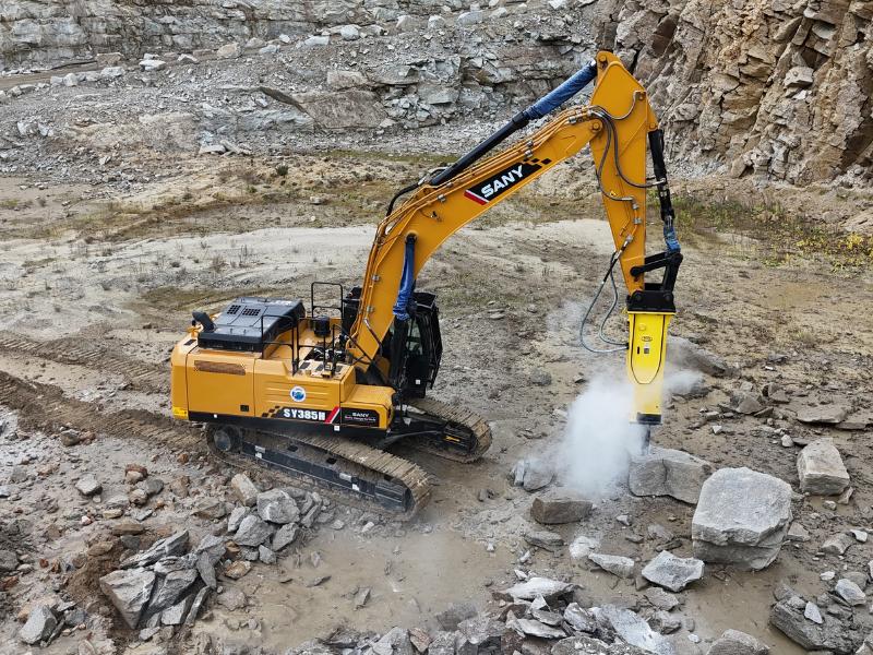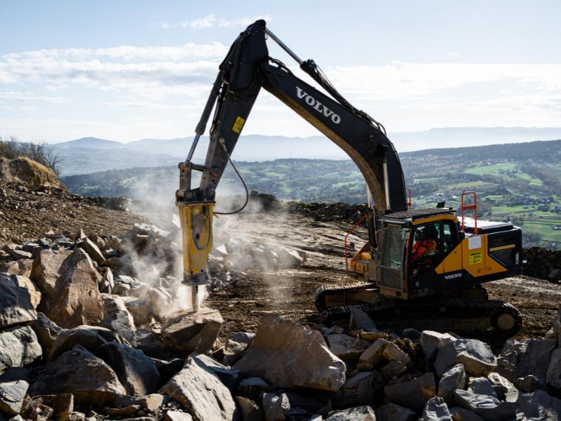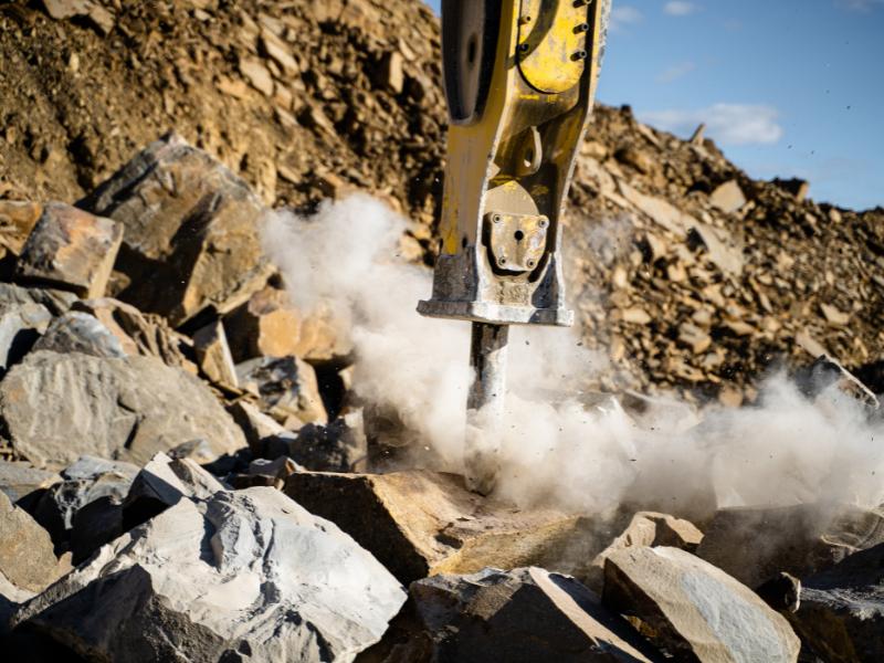 Po rozbiciu masywne skały trafiają do kruszarki. Jednak, aby materiał zmieścił się w jej gardzieli, musi zostać rozdzielony na mniejsze fragmenty. Do tego najlepiej nadają się średnie i małe młoty (DHB 45S – DHB 260S), które można montować do ekonomicznych modeli maszyn.